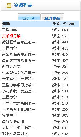 点击图5-2-1-1相应的分类名称进入图5-2-1-2资源导航列表,左侧为目录分类,右侧为该目录下的资源列表,点击资源名称进入该资源的信息页面。