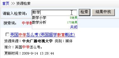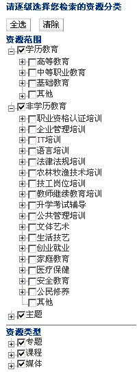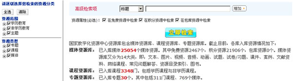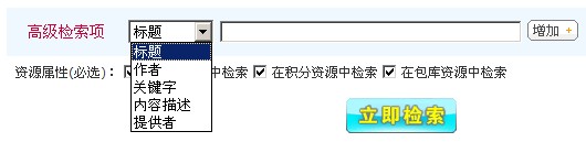 对资源按选择及输入的条件进行高级检索,可进行关键字的全文检索。